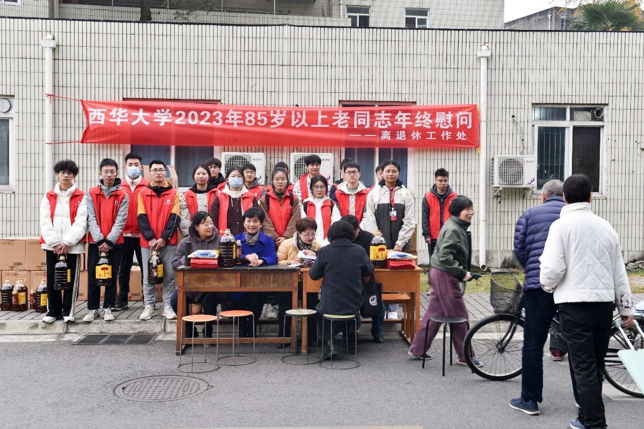 2023年12月5日,bevictor伟德在校本部西华物业与校医院连接处设置了慰问品发放点,集中为老同志发放慰问品。对高龄、孤寡、卧病在床的老同志,由工作人员及青年志愿者将慰问品送到老同志家中,12月7日、8日彭州校区和人南校区分别进行了慰问走访,我们细致周到的服务得到了老同志的一致好评。
