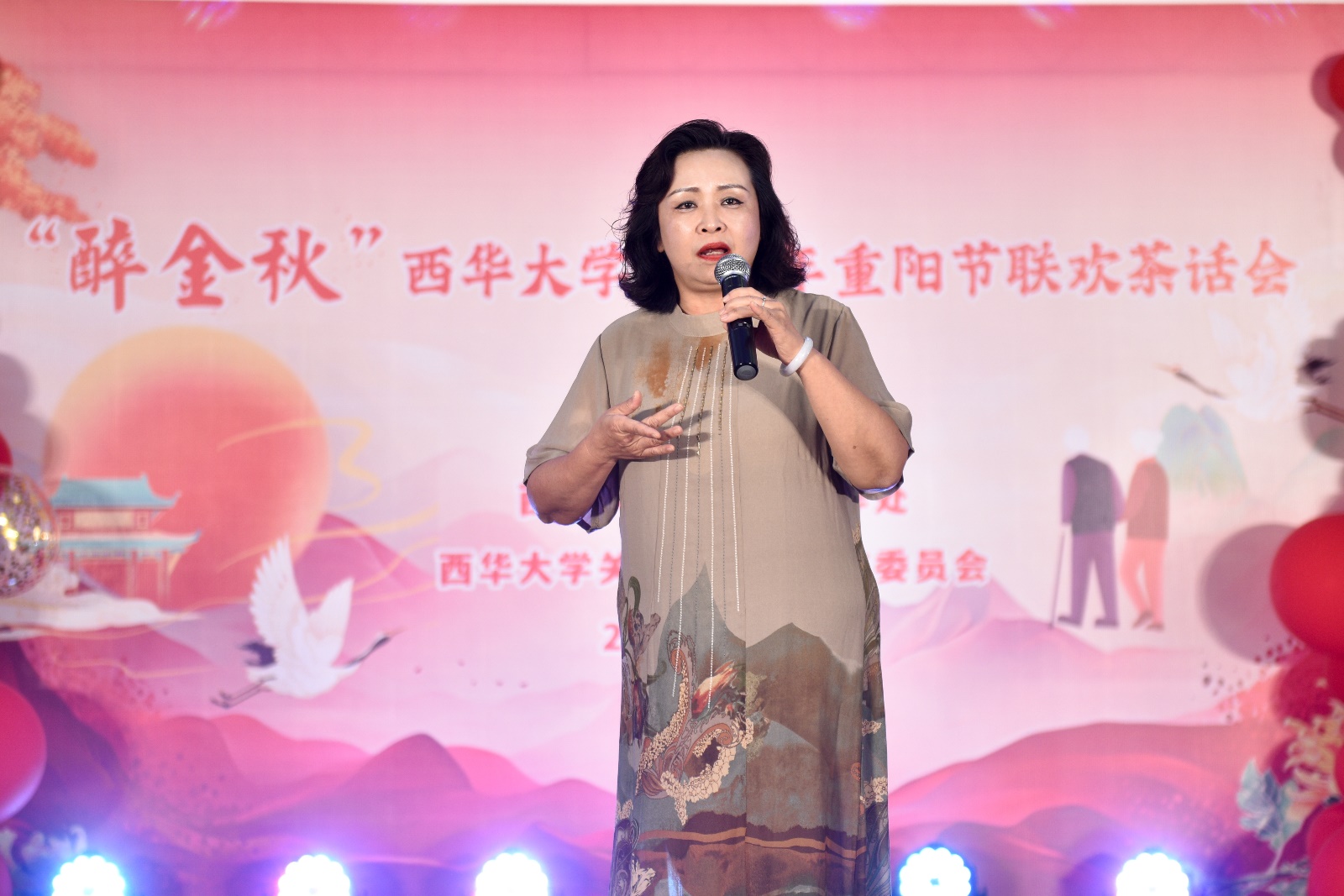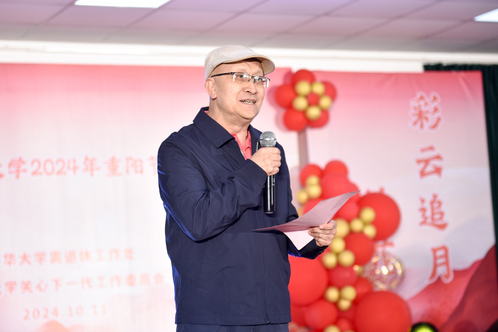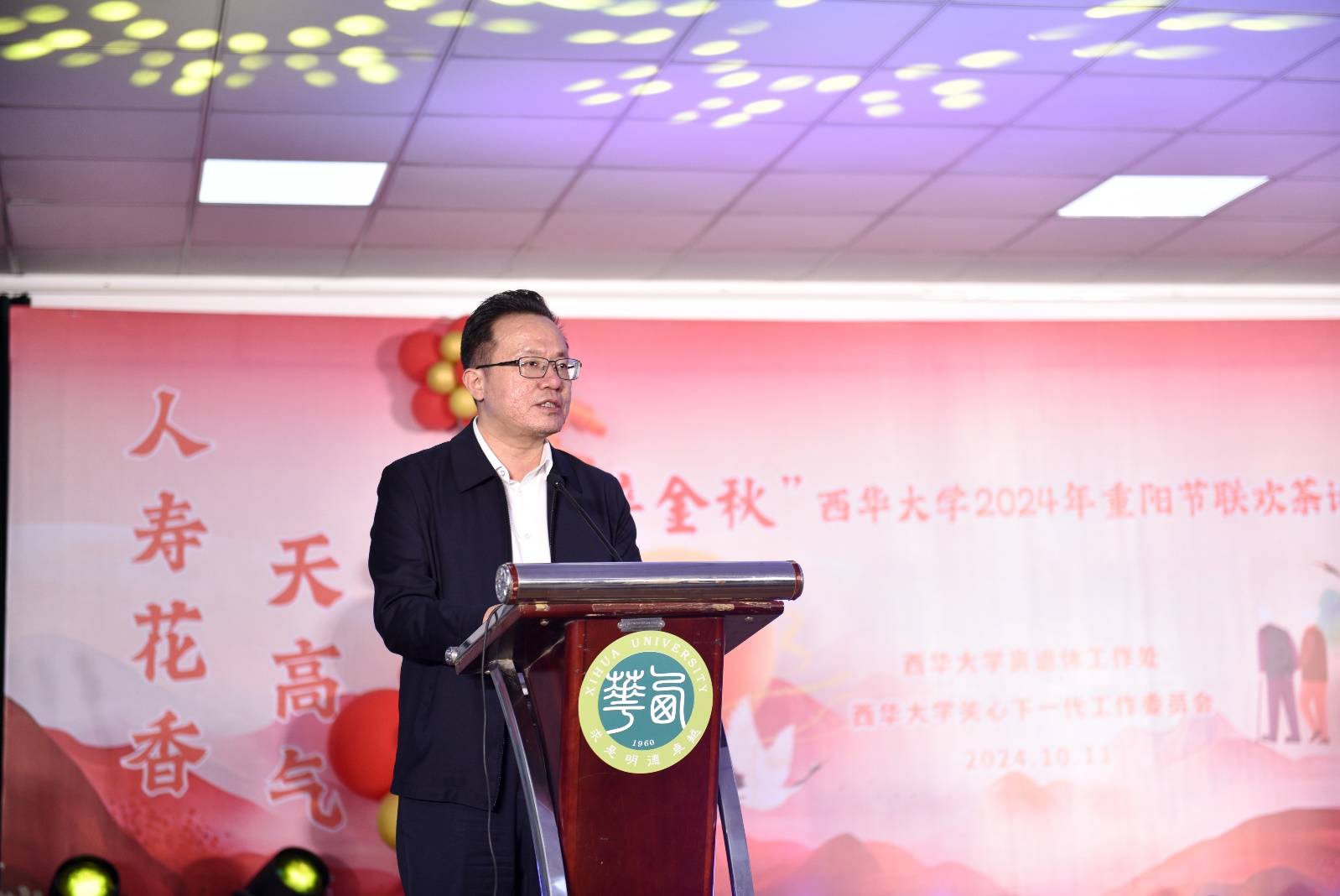 在热烈的掌声中,校党委副书记朱兴华发表了热情洋溢的讲话。他首先代表学校,向离退休老同志致以最诚挚的问候,向为学校发展做出贡献的老领导老同志表达最崇高的敬意。随后,他和大家分享了学校近期在申博、科技创新、招生就业、后勤民生等方面取得的显著成绩。他指出:“这些成绩的取得,离不开各位老同志的辛勤付出。你们是学校事业的建设者、历史的见证者、精神的传播者,正是你们过去打下的坚实基础,才有我们今天取得的丰硕成果。你们为学校事业发展奉献了一生,学校始终铭记着这份深情厚谊。在今后的工作中,学校将继续落实好各项福利政策,组织好各类老年活动,努力为大家谋福利、办实事,努力提升老同志的生活质量与幸福感、获得感。”