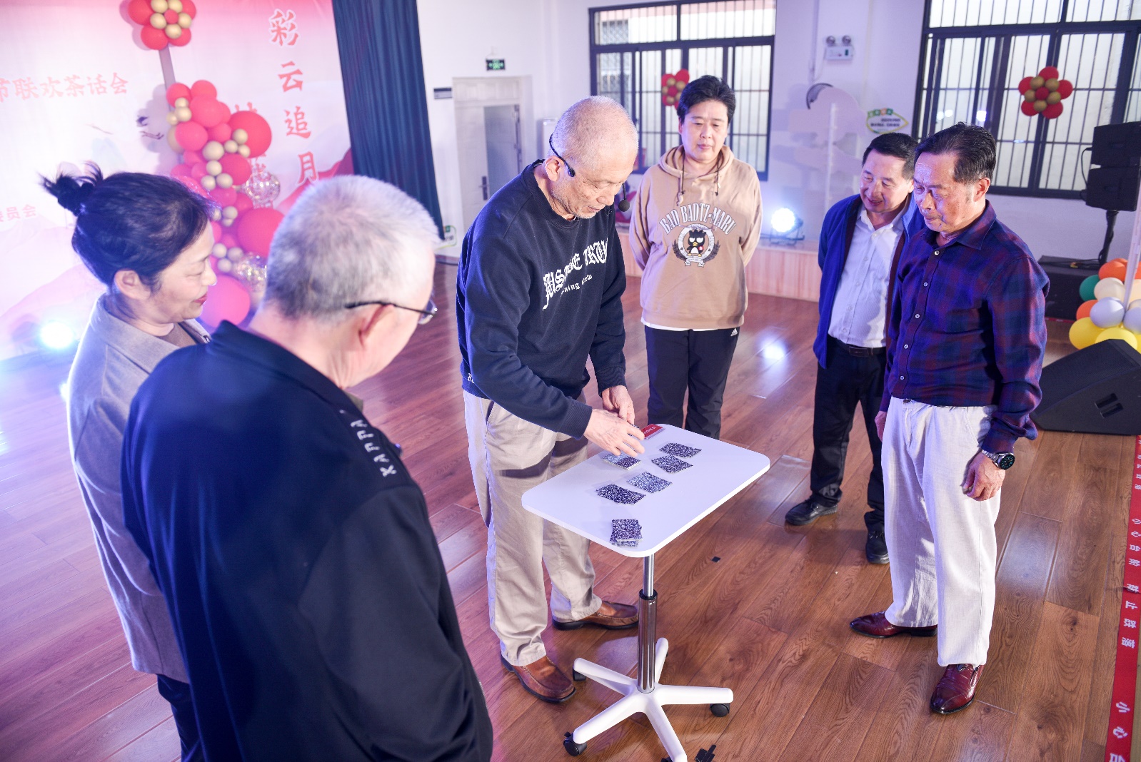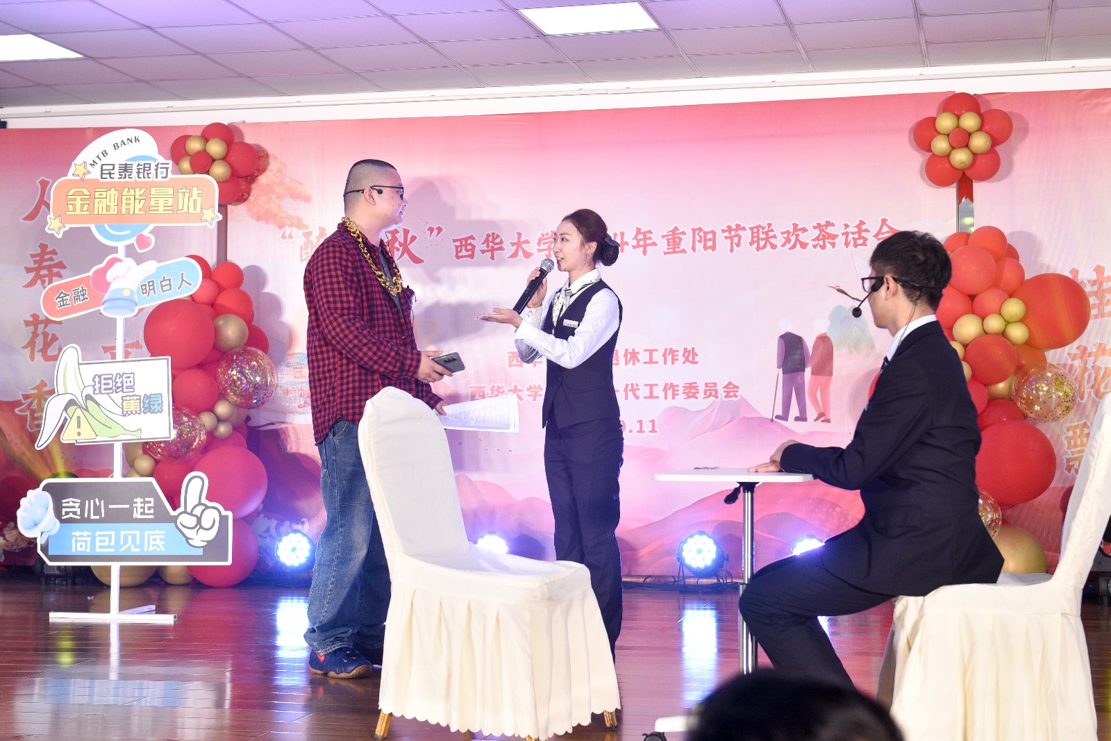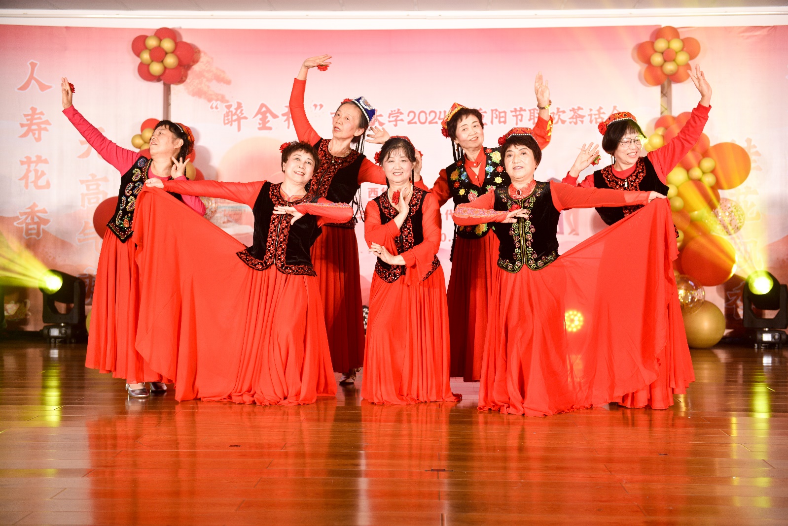 在随后的文艺表演环节,14个精彩纷呈的节目接连登场,形式多样、内容丰富多彩,每个节目都赢得了现场观众的热烈掌声和欢呼。在配乐诗朗诵《念奴娇·赤壁怀古》《沁园春·雪》节目中,伴随着慷慨激昂的背景音乐,这两首气势恢宏的经典作品在朗诵者深情而有力的诵读中,仿佛重新焕发了生命力,饱含对历史的沉思与对祖国大好河山的热爱。蒙古舞《心愿》充满活力,动作优雅流畅,每一个旋转与跳跃都展示着对美好生活的热爱和对心中愿望的坚定追求。在京剧《霸王别姬》节目中,表演者展现了京剧文化的独特魅力,动作行云流水,唱腔铿锵有力,气韵十足,将项羽与虞姬离别的悲壮情感演绎得淋漓尽致。独唱《我的太阳》令人印象深刻,老同志以其独特的嗓音和深厚的音乐素养,完美演绎了这首经典歌曲,歌声如同温暖的阳光,洒在每一个人的心田。在藏舞《蓝色天梦》节目中,舞者们身着色彩斑斓的藏族服饰,宛如一朵朵盛开的花朵,优美的舞姿展现了藏族文化的独特韵味,仿佛将观众带入了辽阔的草原与蔚蓝的天空之中。在扑克牌魔术表演中,表演者展示了高超的手法技巧,当他神奇地从牌堆中找出指定的牌时,全场观众惊叹不已,不禁鼓掌叫好。他借此提醒大家,扑克牌可以用来表演魔术,但千万不要用来赌博,应保持健康积极的生活方式。新疆舞《苹果香》仿佛将观众带入了广袤的新疆大地,舞蹈中那轻盈的舞步,似乎在诉说着她们青春岁月中的点滴回忆;而那欢快的节奏,表达了对未来美好生活的期待与向往。吟诵《爱莲说》字里行间透出对莲花的热爱和对高洁品格的赞美,台下观众无不屏息凝神,陶醉于那优美的韵律与深邃的意境之中,感受莲花所象征的坚定信念与优雅气质。萨克斯二重奏《梁祝》表演配合默契,音符仿佛在空气中轻舞,流淌出深情的旋律,完美地诠释了梁山伯与祝英台之间的凄美爱情,让人沉醉其中。新疆舞《柯尔克孜姑娘》展现了柯尔克孜族姑娘的青春活力与灵动神韵,舞步时而婀娜多姿,时而充满力量,充满了艺术感染力,舞蹈洋溢出的青春气息令人叹为观止。益智游戏《看看谁的反应快》为活动增添了无限乐趣,参加表演的老同志们虽然年事已高,但反应速度丝毫不逊色于年轻人,充分展现出他们敏捷的思维能力和良好的健康状态。电吹管演奏《挡不住的思念》表达了对往昔岁月的深情怀念,演奏者技艺娴熟,深情婉转的乐声勾起了在场所有人对美好岁月的无限追忆,不少观众沉浸其中,动情地轻声跟随旋律哼唱。女生小合唱《回娘家》生动描绘了回家探亲的温馨情景,她们的声音清脆悦耳,婉转动人,通过默契的配合与细腻的情感表达,使在场观众感受到了那份浓厚的亲情。浙江民泰商业银行郫都支行的工作人员带来了精心准备的情景剧《小心有诈》,通过生动的表演和贴近生活的情节,再现了现实中常见的诈骗手段,让老同志对防诈骗知识有了更深刻的理解和认识,提高了大家对诈骗的警觉性。