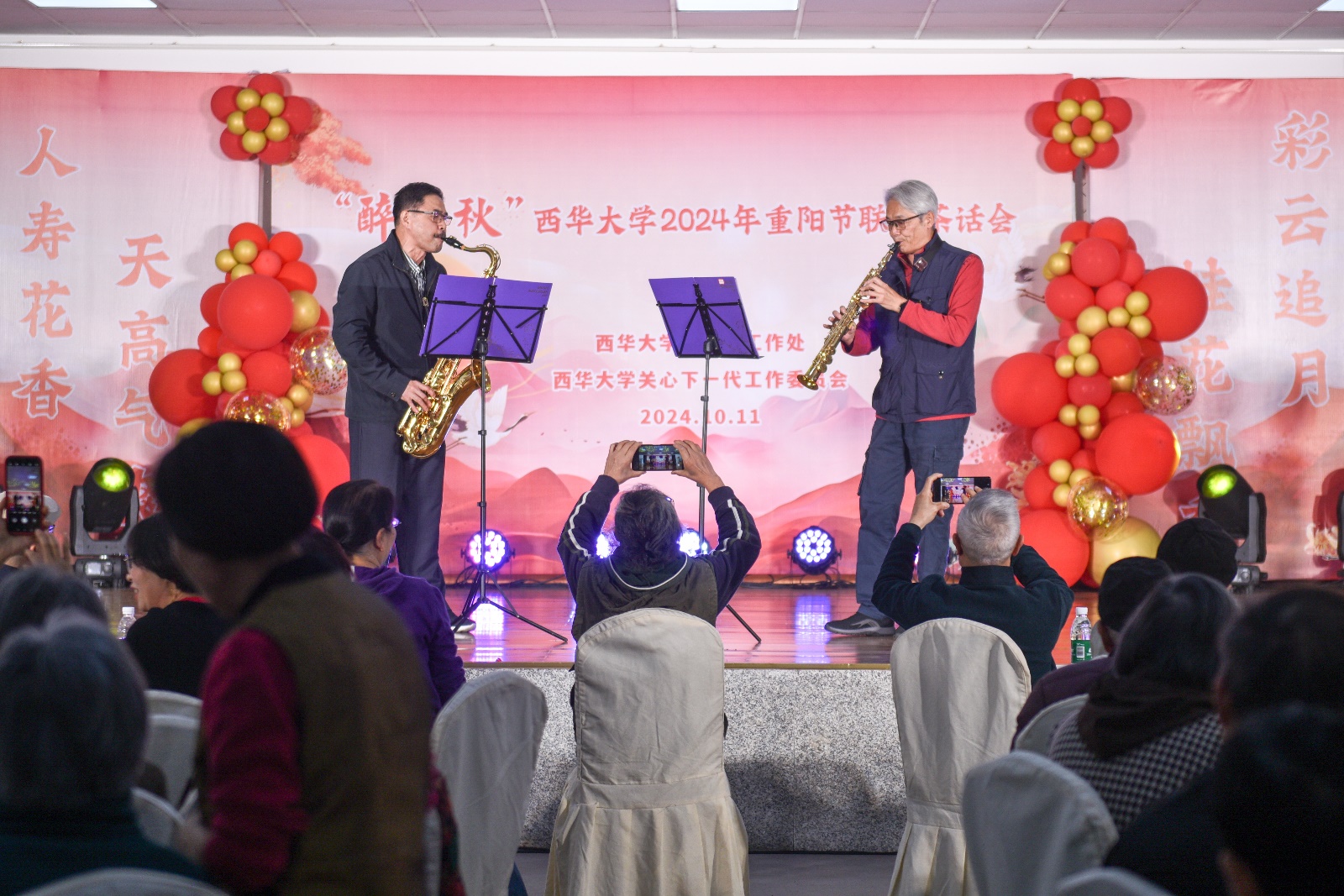活动现场洋溢着浓浓的节日气氛,整个会场欢声笑语不断,观众的掌声经久不息,老同志们深深感受到了来自学校大家庭的关怀与温暖。虽然老同志们的青春岁月已然远去,但他们依然朝气蓬勃,用丰富多彩的节目展示了积极向上的生活态度与精神风貌。通过这次活动,学校表达了对老同志们长期以来为教育事业默默奉献的无尽敬意。最后,本次重阳节联欢茶话会在一片欢乐祥和的氛围中圆满落幕。