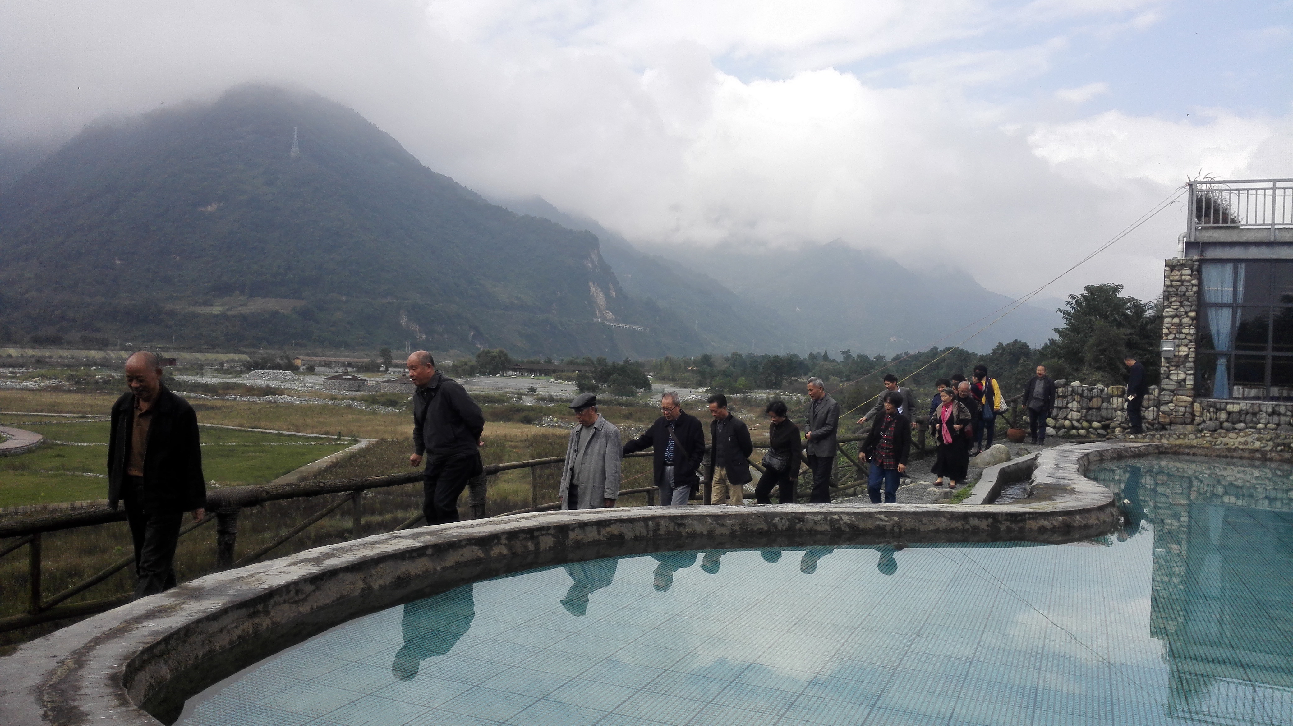 上午十点我们抵达了彭州市小鱼洞镇,先后参观了作为5.12汶川大地震遗址之一的小鱼洞大桥和小鱼洞竹林乡村俱乐部。站在小鱼洞大桥前眺望对岸一排排色彩鲜艳的农家新居,老同志们纷纷感叹作为当年地震重灾区的小鱼洞镇早已焕发了勃勃生机;漫步在竹林乡村俱乐部的湿地公园小道上,老同志们体会到了今天的农家乐已经走上了保护环境、文化搭台、综合开发的发展新路。