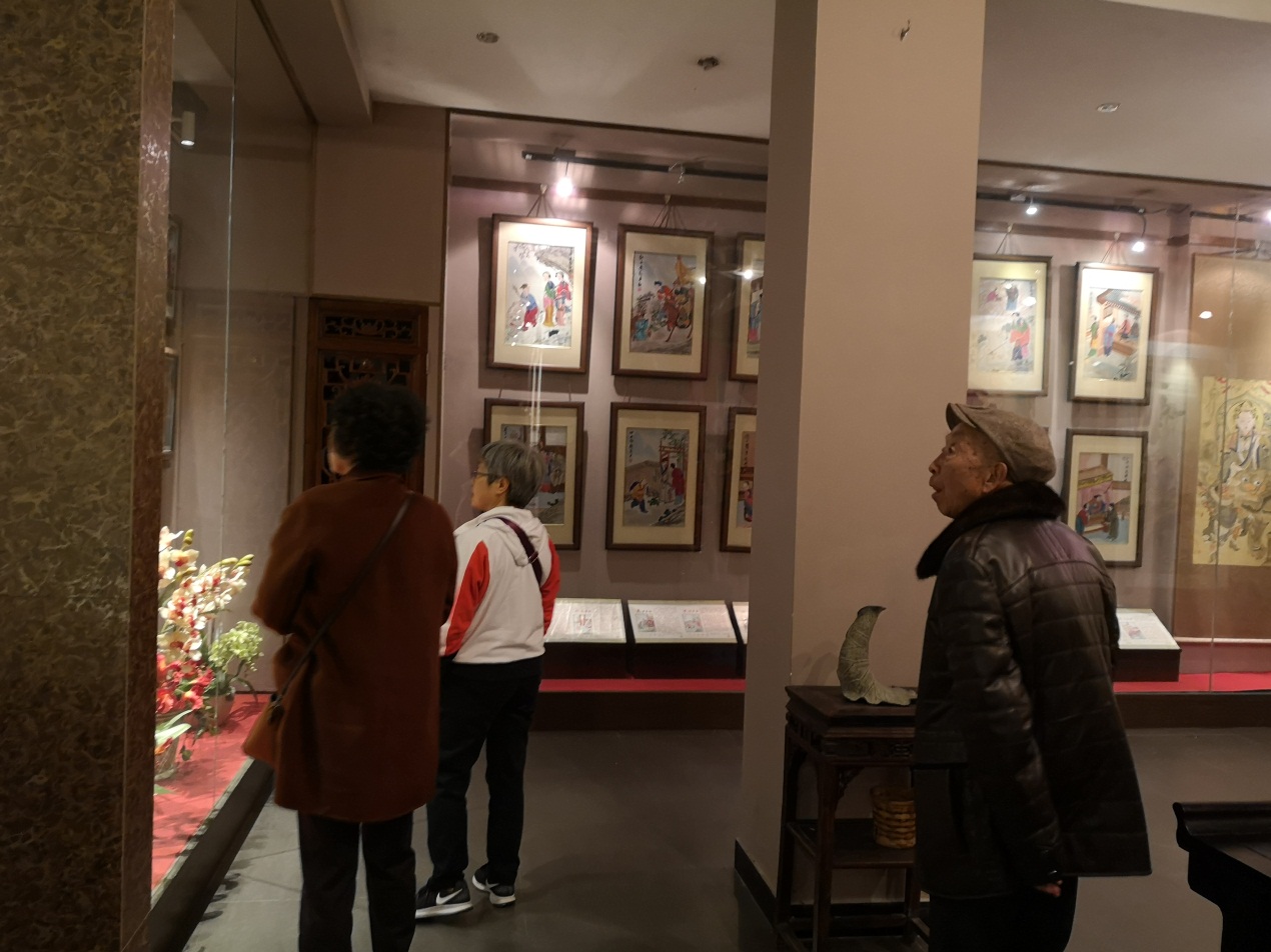 参加座谈会的老干部们参观年画村富有民族特色的年画作品