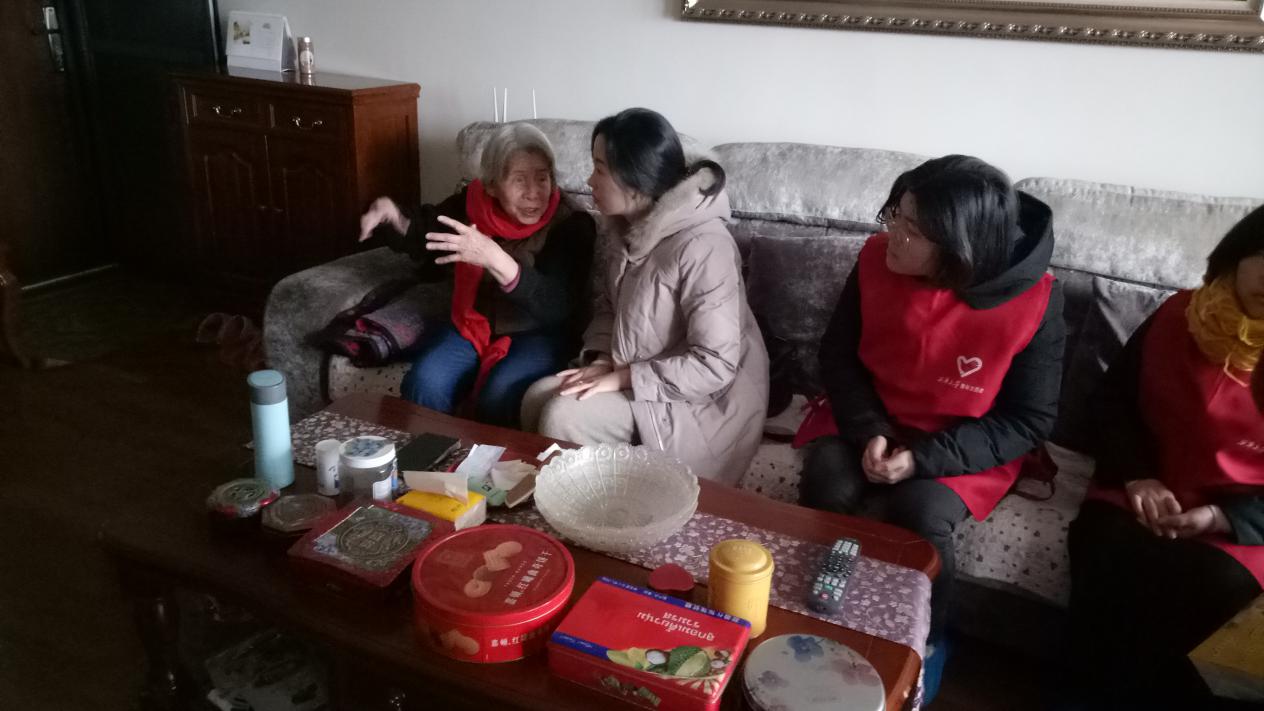 六组志愿者们在老师带领下前往离退休老教师家中,为离退休老教师送去了饺子和汤圆、红围巾,张贴“福”字、春联、窗花,与他们促膝交谈,嘘寒问暖,亲情陪护。
